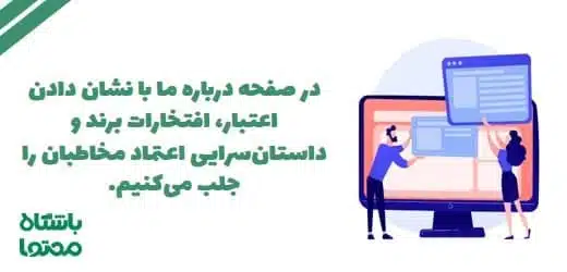 مخاطبان باهدف کسب اطمینان از اعتبار و اعتماد به برند شما به صفحه درباره ما مراجعه میکنند. پس بهتر است افتخارات و نمادهای معتبری که کسب کردهاید را در این قسمت بنویسید. اگر سایت شخصی دارید از ضمیر (من) و اگر از زبان برند مینویسید از ضمیر (ما) استفاده کنید.